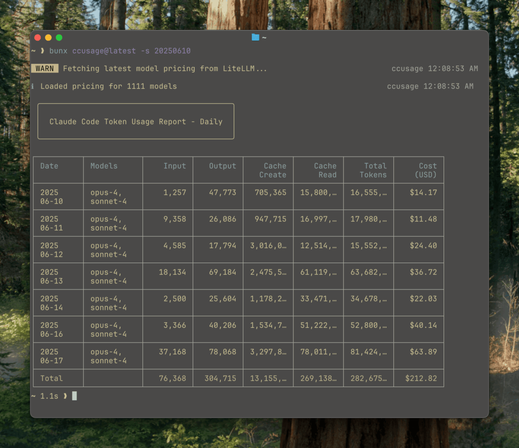 bunx ccusage daily