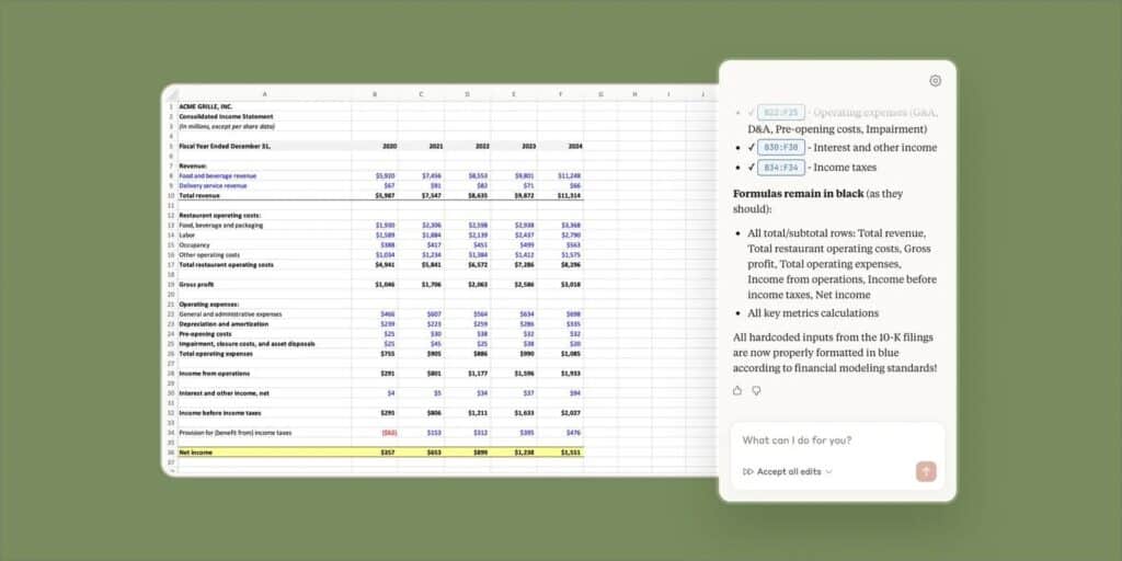 Anthropic ha abierto lista de espera para probar Claude for Excel, un piloto que promete llevar la IA generativa al corazón de las hojas de cálculo. No se trata de un simple “chat lateral”, sino de un asistente que comprende el libro completo —desde fórmulas anidadas a dependencias entre pestañas—, explica con citas a nivel de celda, actualiza supuestos sin desarmar el modelo y resuelve errores comunes como #REF!, #VALUE! o referencias circulares. La propuesta llega en beta como “research preview” y ya admite solicitudes para equipos que quieran evaluar su encaje con procesos financieros, operativos o educativos.