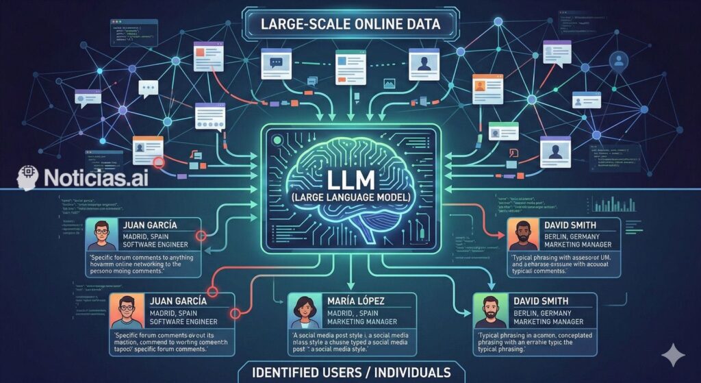 La idea central es sencilla, pero inquietante: la desanonimización suele tener dos pasos. Primero, perfilar a una persona a partir de sus publicaciones (intereses, profesión, ubicación, hábitos, forma de expresarse, temas recurrentes). Segundo, encontrar una identidad real que encaje con ese perfil, comparando contra bases de datos o huellas públicas en la web.